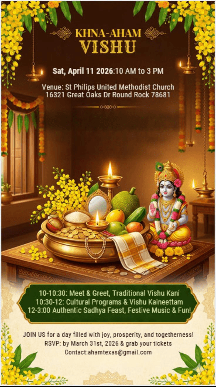 AHAM (Austin Hindu Association for Malayalis) is a nonprofit community organization created to nurture our Hindu faith, Malayali culture, and Sanatana Dharma values.